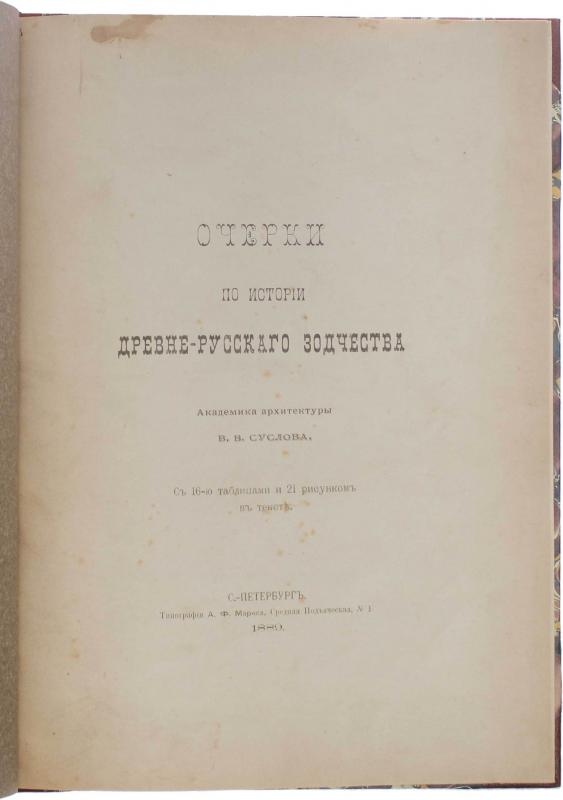 Суслов В.В. Очерки по истории древне-русского зодчества (Антикварная книга 1889г.)
