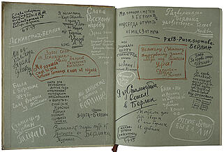 Оригинально оформлена вшивными в блок вклейками разного формата на бумаге разного цвета: газетная вырезка "Товарищи бойцы, сержанты и офицеры!", "Бронзовая фигура красноармейца, шагающего через Одер. Подарок воинов 1-го белорусского фронта товарищу Сталину", "Листок-молния", "Схематический план центральной части Берлина", флаг "150 стрелковой идрицкой дивизии", листовка "С именем Сталина - вперед на Берлин", медаль "За взятие Берлина". Часть вклеек имеет художественные тисненные по бумаге рамки. Книга начала создаваться в первые же дни после окончания войны.