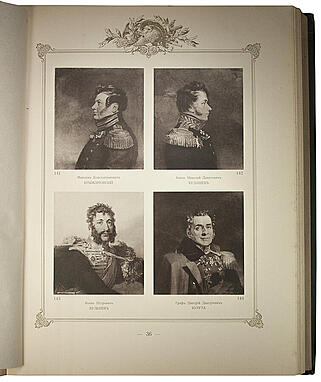 Юбилейное издание. С литографированным титульным листом и факсимиле благословения Императора. В издании представлено 329 портретов, размещенных по четыре на листе в рамке. Полностью комплектный экземпляр, без штампов.