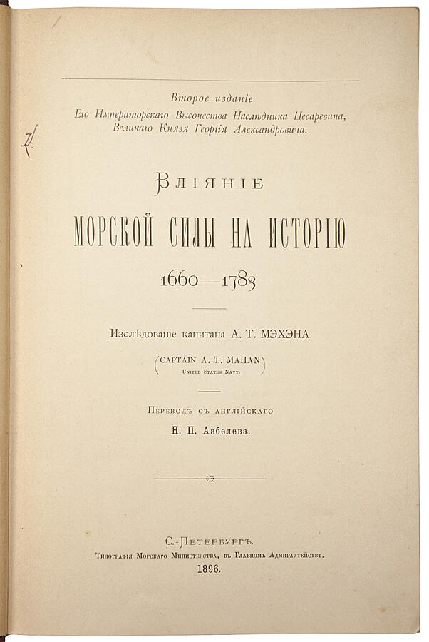 Прижизненное издание американского военного морского теоретика и историка Альфреда Тайера Мэхэна (1840-1914).