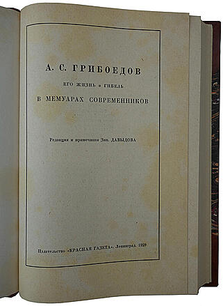 А.С. Грибоедов. Его жизнь и гибель в мемуарах современников (Антикварная книга 1929г.)