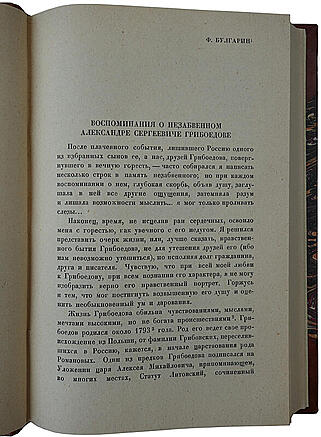 «...Записи, собранные в этой книге, печатались в различных периодических изданиях на протяжении многих лет после трагической смерти Грибоедова, и являются, несмотря на некоторую их хаотичность и разбросанность, чуть ли не единственными свидетельствами отдельных моментов его уникальной биографии...».