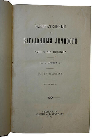 Карнович Е.П. Замечательные и загадочные личности XVIII и XIX столетий (Антикварная книга 1893г.)
