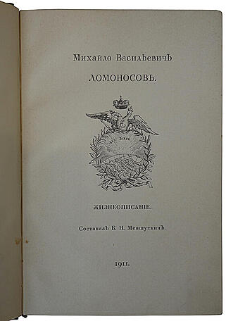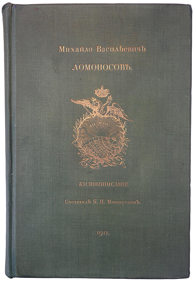 Книга, изданная к 200-летнему юбилею М. В. Ломоносова. Ее автор — химик, профессор Петроградского университета, один из ведущих исследователей жизни, деятельности и творчества Ломоносова Б. Н. Меншуткин. Почти сорок лет он посвятил изучению наследия первого отечественного академика и опубликовал целый ряд работ о нем как в русской, так и в иностранной печати. Именно ему было поручено к юбилейной дате принять участие в подготовке издания собрания сочинений и написании научно-популярной биографии ученого.