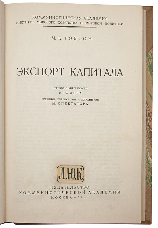 Гобсон Ч.К. Экспорт капитала (Антикварная книга 1928г.)