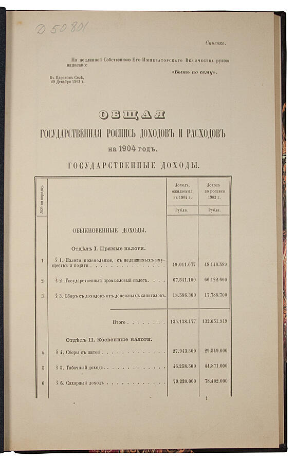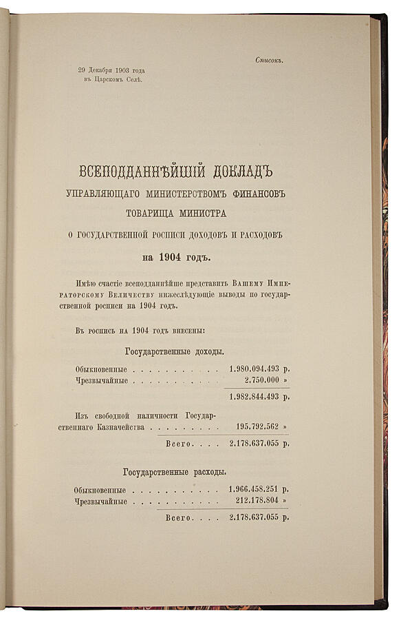 Общая государственная роспись доходов и расходов на 1904 год (Антикварная книга 1903г.)