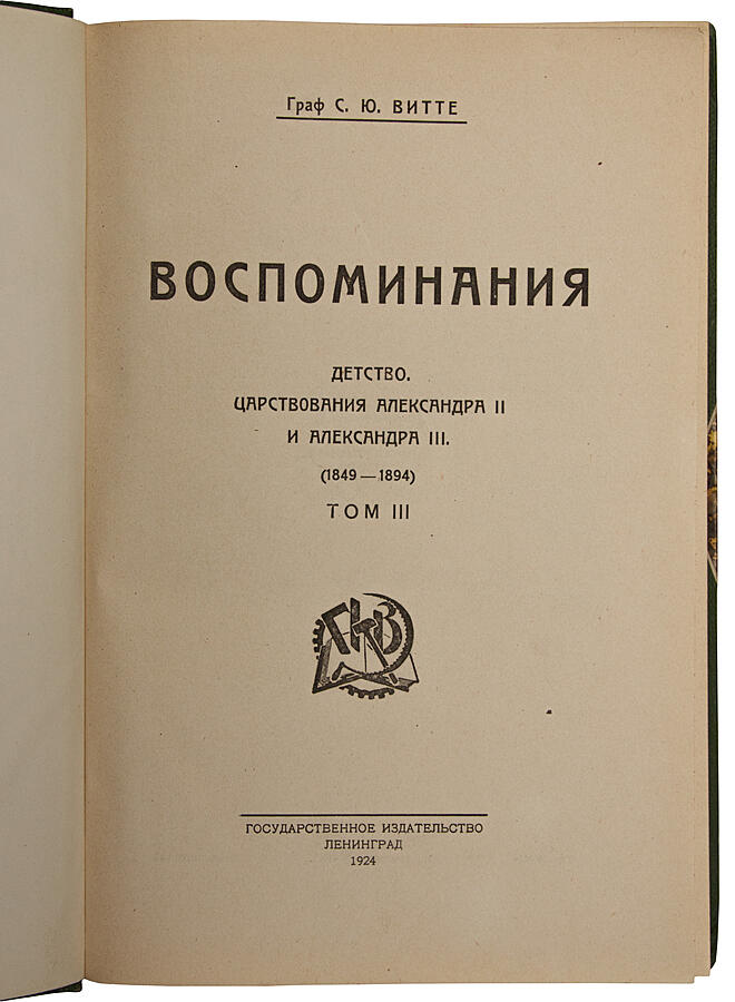 Витте С.Ю. Воспоминания в 3 томах (Антикварное издание 1924г.)