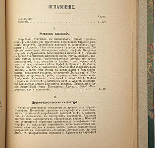 Автор рассматривает развитие церковной живописи начиная с римских катакомб, мозаики, скульптуры, а заканчивает подробнейшим обзором древнерусского иконного дела. Впервые в отечественной литературе Покровский обращает внимание читателей на памятники мемориального искусства — саркофаги, надгробия. По сравнению с первым изданием в настоящем добавлен обширный раздел, посвященный греческим и русским памятникам XVI и XVII вв.
