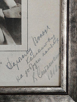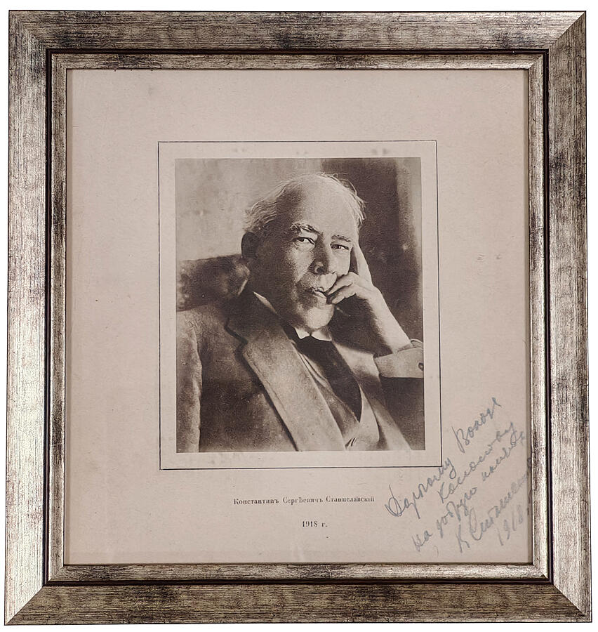 В правом углу портрета автограф Станиславского К. С. - "Дорогому Володе Колосову на добрую память К. Станиславский 1918г."