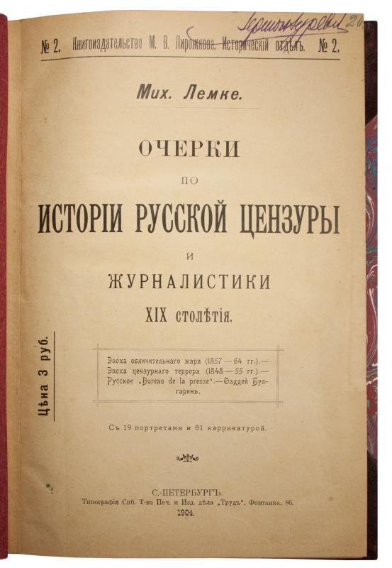 Лемке М.К. Очерки по истории русской цензуры и журналистики XIX столетия (Антикварная книга 1904г.)