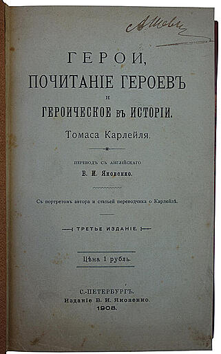 Перевод с английского В.И. Яковенко. С портретом автора и статьей переводчика о Карлейле. Третье издание.