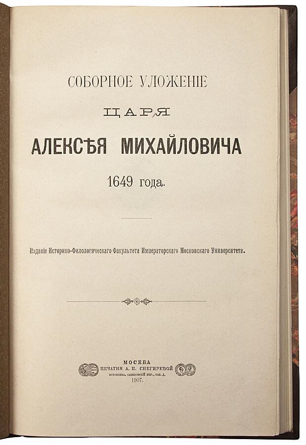 Соборное уложение царя Алексея Михайловича 1649 г. (Антикварная книга 1907г.)