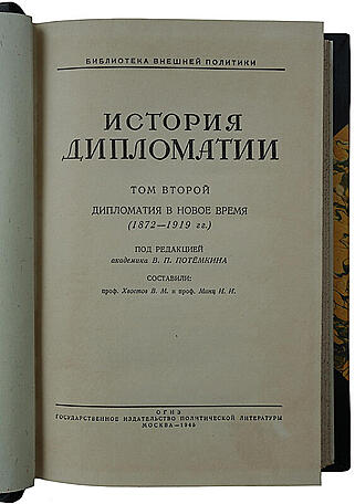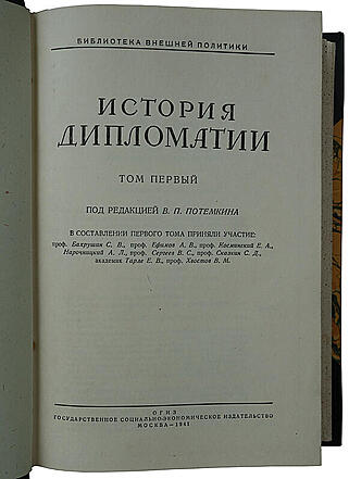 Библиографическая редкость. Государственное социально-экономическое издательство. Издание под редакцией В. П. Потемкина. Весь трехтомный цикл ставит своей задачей — на основе анализа международных отношений в последовательно сменявшиеся эпохи — изложить краткую историю дипломатии от древних времен до нашего времени.