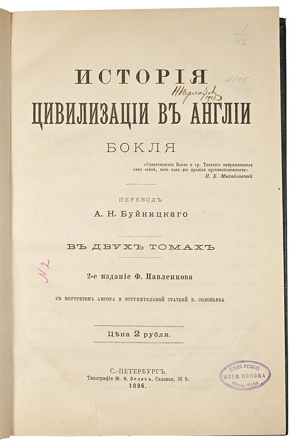 Бокль Г.Т. История цивилизации в Англии (Антикварная книга 1896г.)