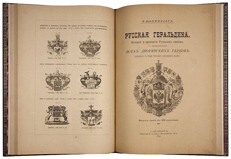 Винклер П.П. Русская геральдика. История и описание русских гербов, с изображением всех дворянских гербов, внесенных в общий гербовник Всероссийской империи (Антикварная книга 1892-1894 гг. в трех выпусках)