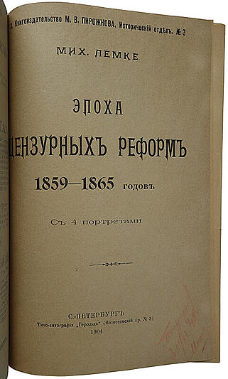 Лемке М. Эпоха цензурных реформ. 1859 - 1865 гг. (Антикварная книга 1904г.)
