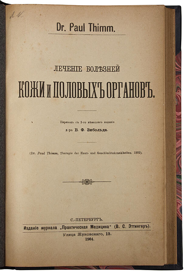 Dr. Paul Thimm. Перевод с 2-го немецкого издания д-ра В.Ф. Зибольда.