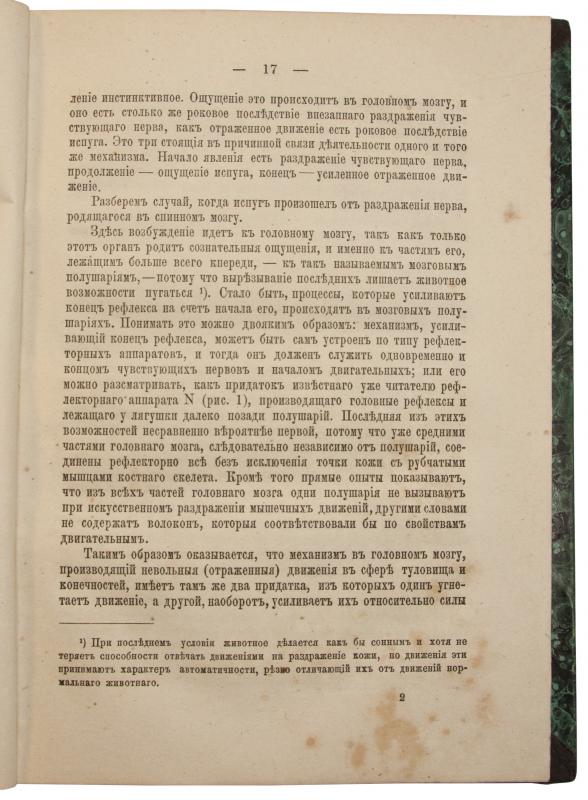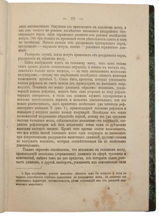Курс лекций, прочитанный им в Московском университете, лег в основу «Физиологии нервных центров». Учениками Сеченова были академик И.П.Павлов, профессор К.А.Тимирязев и многие другие. В настоящую книгу вошло новое издание важнейшей работы И.М.Сеченова «Рефлексы головного мозга», которая первоначально была запрещена цензурой, а ее автор чуть не был сослан на Соловки за пропаганду материализма и безбожия (впервые опубликована в 1863 г. в «Медицинском вестнике», отдельным изданием – 1866 г.). Эта работа положила начало эры объективной психологии. Большое влияние работа Сеченова оказала на З.Фрейда, И.П.Павлова и многих других выдающихся ученых.