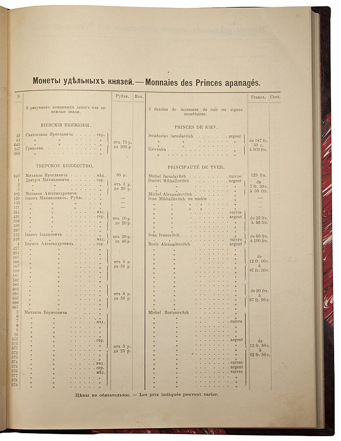 Петров В.И. Каталог русских монет удельных князей, царских и императорских с 980 по 1899 год с разъяснением редкости и обозначением стоимости их на русском и французском языках. (Антикварная книга 1899г.)