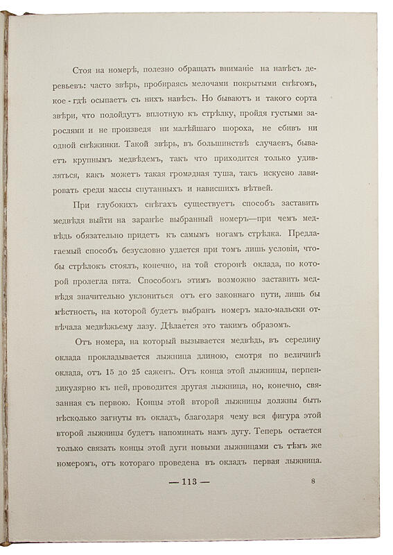 Книга А.А.Ширинского-Шихматова стала первым исследованием поведения медведя в дикой природе. Автор рассказывает о том, когда медведь обычно уходит в зимний сон и что может задержать начало этого ежегодного этапа жизни зверя. Уйти в сон до первого снега - для медведя вопрос выживания, так как по следам на снегу его легко выслеживали охотники. Медведь предчувствует зиму, понимая, будет ли она холодной или теплой, сухой или сверх нормы влажной, и в зависимости от этого выбирает место для берлоги. Автор сделал ряд точных и весьма ценных наблюдений поведения медведей, которые подтверждались уже другими исследователями десятилетия спустя. Особенно интересны зарисовки следовой активности медведя в дикой природе, выявляющие определенные закономерности поведения, стремление запутать возможного преследователя. Эти зарисовки показывают, насколько высоким в сравнении с другими лесными обитателями «интеллектом» обладает медведь.