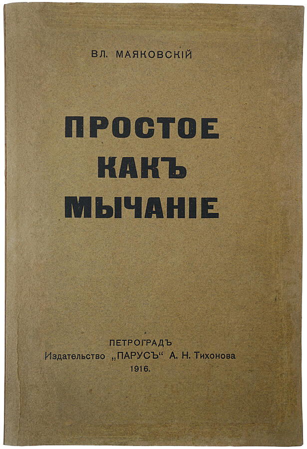 Первый сборник стихов Маяковского, вышедший в издательстве «Парус» в 1916-м.