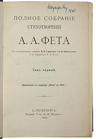 Фет А.А. Полное собрание стихотворений. В двух томах. (В одном переплёте, антикварная книга 1912г.)