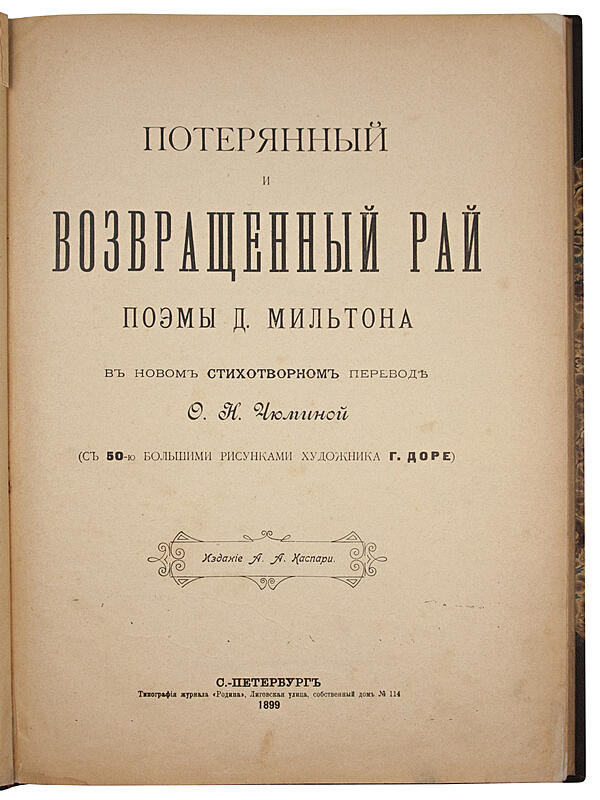 Мильтон Д. Потерянный и возвращенный рай (Антикварная книга 1899г.)