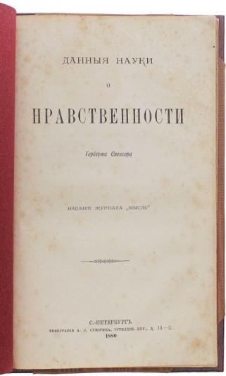Данные науки о нравственности Герберта Спенсера (Антикварная книга 1880г.)