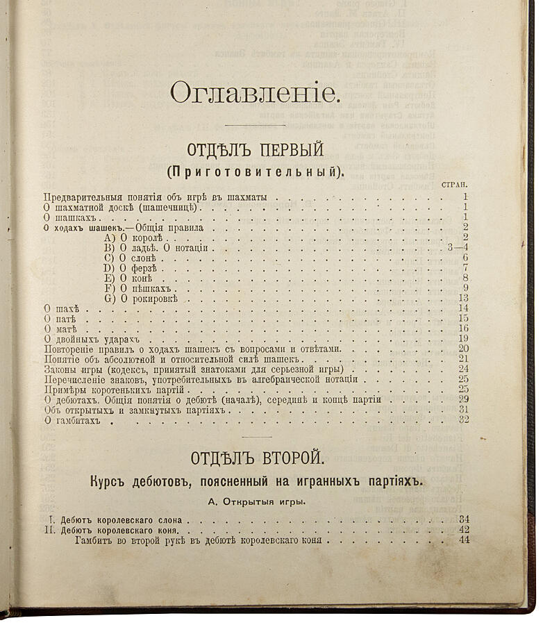 В первом даются общие сведения о шахматной игре, правилах, способах записи партий. Второй раздел содержит курс дебютов с пояснениями на обширном материале реально сыгранных партий.