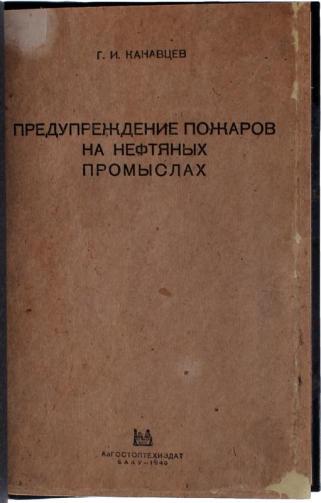 Канавцев Г.И. Предупреждение пожаров на нефтяных промыслах (Антикварная книга 1940г.)