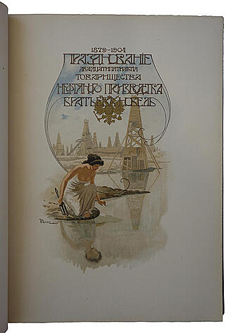 Юбилейное, прекрасно оформленное подарочное издание, приуроченное к 25-летию деятельности нефтепромышленников Нобелей. В альбоме, с одной стороны, представлены само празднование юбилея, молебен, поздравительные речи, присутствующих на фуршете высоких гостей, а с другой стороны - история возникновения и развития «Товарищества нефтяного производства» братьев Нобель.