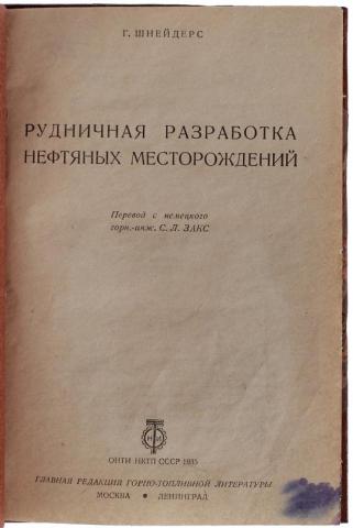 Шнейдерс Г. Рудничная разработка нефтяных месторождений (Антикварная книга 1935г.)