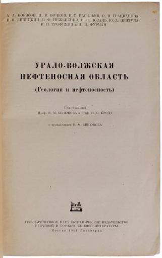 Геология и нефтеносность. Под редакцией проф. В.М. Сенюкова и проф. И.О. Брода с предисловием В.М. Сенюкова.