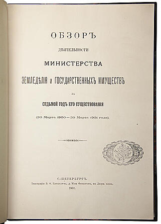 Обзор деятельности министерства земледелия и государственных имуществ за седьмой год его существования (Антикварная книга 1901г.)