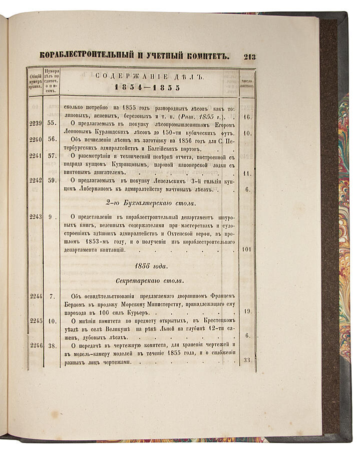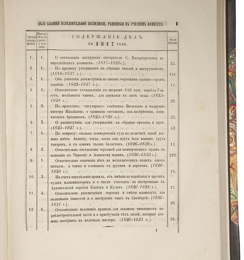 Описи делам и документам Комиссии для составления сметных исчислений на построение кораблей и других судов 1824-1827 г. и делам и журналам Кораблестроительного и учетного комитета 1827-1852 г. (Антикварная книга 1857г.)