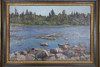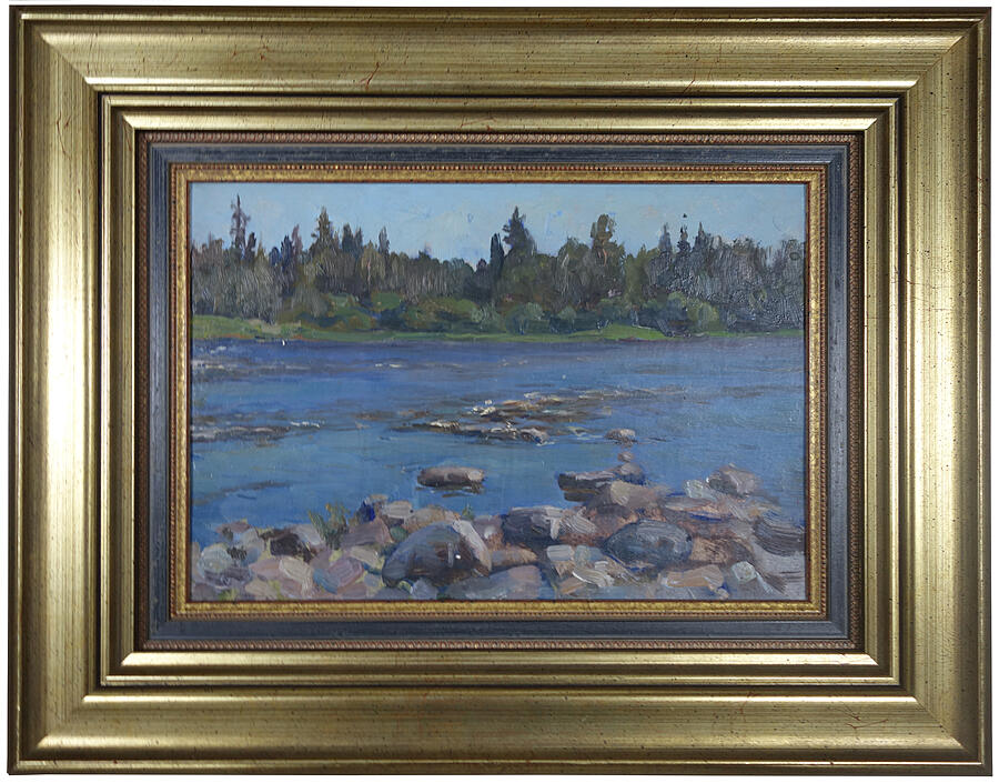 Кузнецов Михаил Александрович (1904-1989). Речка. 1969 Картон, масло. 22,5×32,5. На обороте подпись, название и дата. Оформлено в раму.