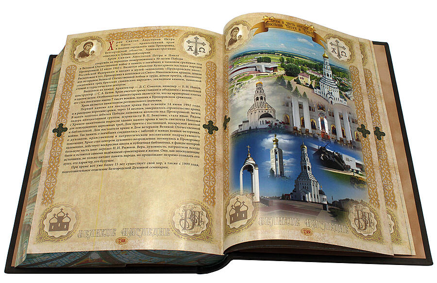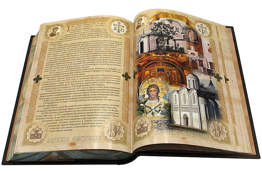 Подарочное издание в историческом кожаном переплете, восхитительное цветное тиснение по коже, на обрез книжного блока с трех сторон нанесено тематическое изображение. Книга «Главный храм Вооруженных Сил Российской Федерации», это описанный доблестный воинский путь, увековеченный в духовных местах России. В содержании множество интересных документов и иллюстраций. Это подарочное издание, одно из ярких и значимых из серии «Великое наследие».