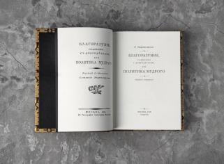 Теперь самые интересные и полезные книги в одном комплекте: «Государь» Макиавелли — о достижении цели любыми путями и средствами; «Справедливость» Спенсера — о том, как подходить к основным вопросам права, основываясь на этическом учении автора; «Политика мудрого» Экартсгаузена предлагает испытанную столетиями стратегию достижения успеха и карьерных высот. Все эти сокровища напечатаны на бумаге высокого качества и облачены в ручные составные переплеты из кожи и дизайнерской бумаги, а также помещены в общий стильный футляр ручной работы.