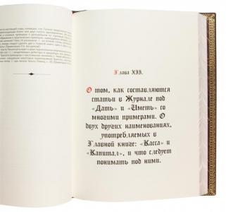 Стильно оформленное эксклюзивное подарочное издание в кожаном переплете ручной работы, художественное тиснение в лучших традициях переплетного искусства 19 века, с художественным обрезом и шелковым ляссе.