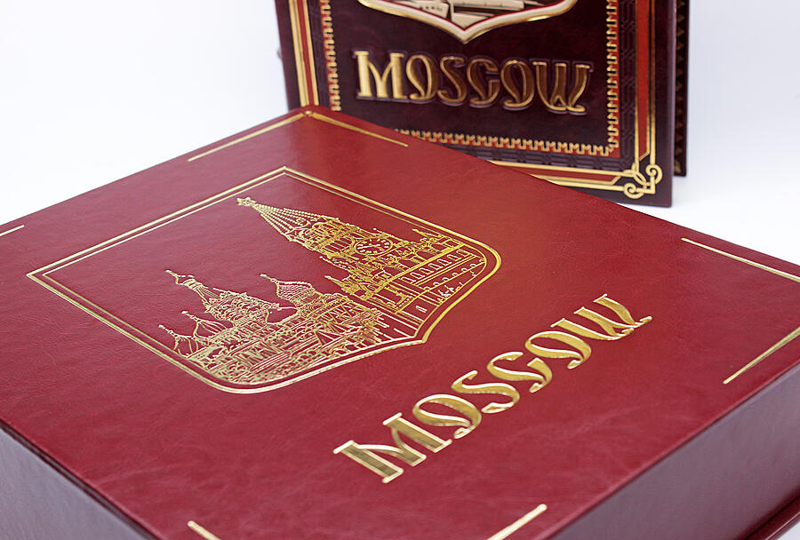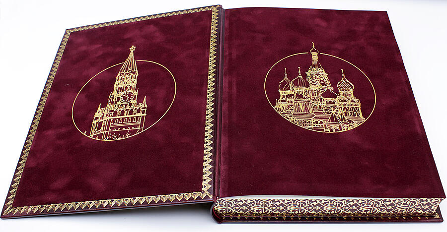 | Исполнение: | Фигурная вырубка, декоративная накладка в виде герба Москвы (литьё – латунь, эмаль). Форзац – дизайнерская бархатная бумага. Книжный блок – дизайнерская мелованная бумага |