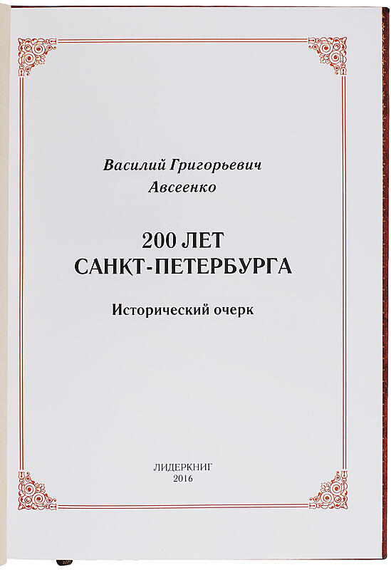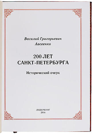 Книга писателя, литературного критика, журналиста и историка Василия Григорьевича Авсеенко (1842—1913) "200 лет Санкт-Петербурга. Исторический очерк" увидела свет в 1903 году, к юбилею столицы российской империи. Иллюстрированный исторический очерк был издан по распоряжению Городского головы города Санкт-Петербурга.