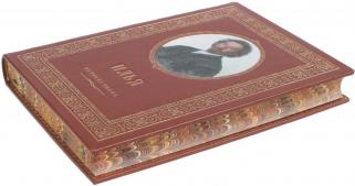 Стильно оформленное эксклюзивное подарочное издание в кожаном переплете ручной работы, художественное тиснение в лучших традициях переплетного искусства 19 века, с художественным обрезом и шелковым ляссе.