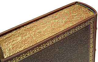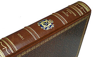 | Описание переплета: | Цельнокожаный переплет ручной работы, обильно декорировано тиснение и позолотой, тонированный обрез |