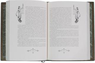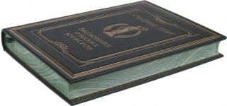 Стильно оформленное подарочное издание в кожаном переплете ручной работы с золотым тиснением на обложке и трехсторонним окрашенным обрезом.