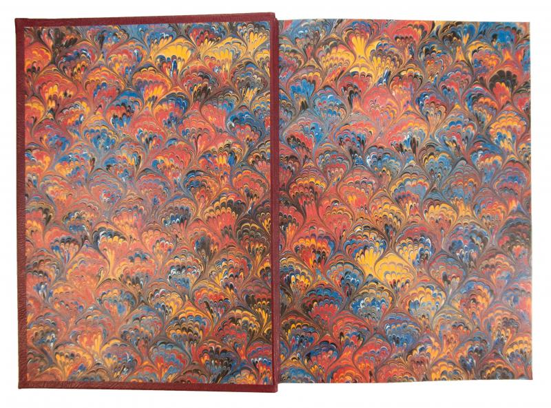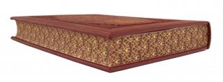 | Описание переплета: | Цельнокожаный переплет ручной работы, художественное тиснение, форзацы из мраморной бумаги, шелковое ляссе, окрашенный обрез. |