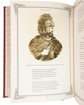 Стильно оформленное эксклюзивное подарочное издание в кожаном переплете ручной работы, художественное тиснение в лучших традициях переплетного искусства 19 века, с художественным обрезом и шелковым ляссе.