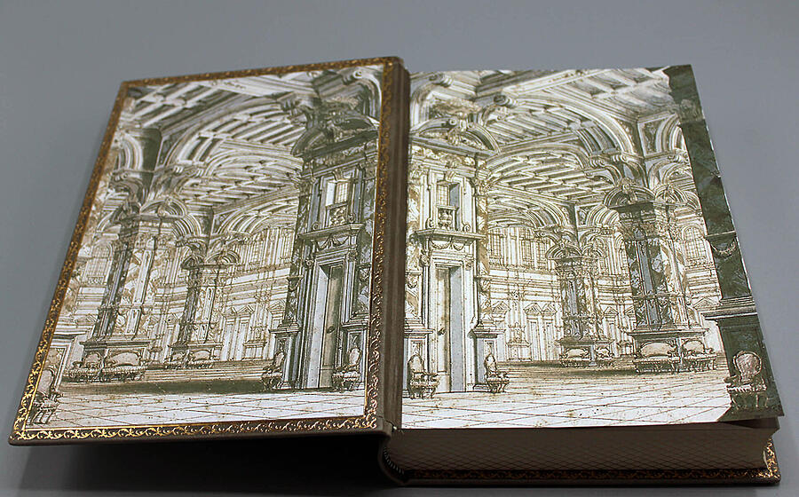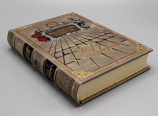 | Описание переплета: | Исторический французский стиль переплета, тиснение по коже золотом и цветное. Книжный блок страниц отшлифован и тонирован с нанесением узора |