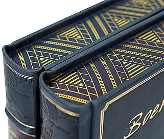 | Описание переплета: | Кожаный переплет ручной работы, трехсторонний тонированный обрез с золоченым узором. Несколько видов тиснения: блинтовое, золотой и цветной фольгой |