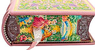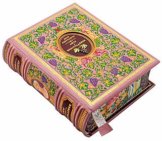 | Исполнение: | Иллюстрации отпечатаны на итальянской бумаге TINTORETTO CREMA. Книга инкрустирована позолоченной виноградной гроздью, изготовленной из серебра и фионитов. Шелковое дизайнерское ляссе. Каптал инкрустирован кристаллами |