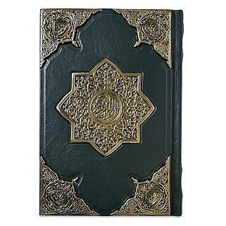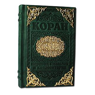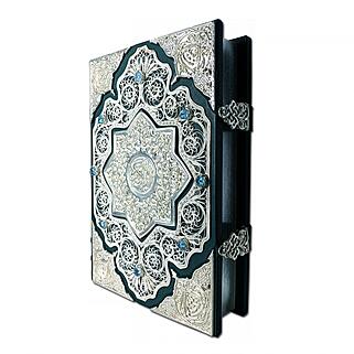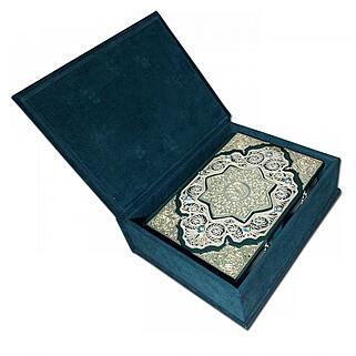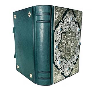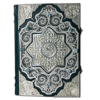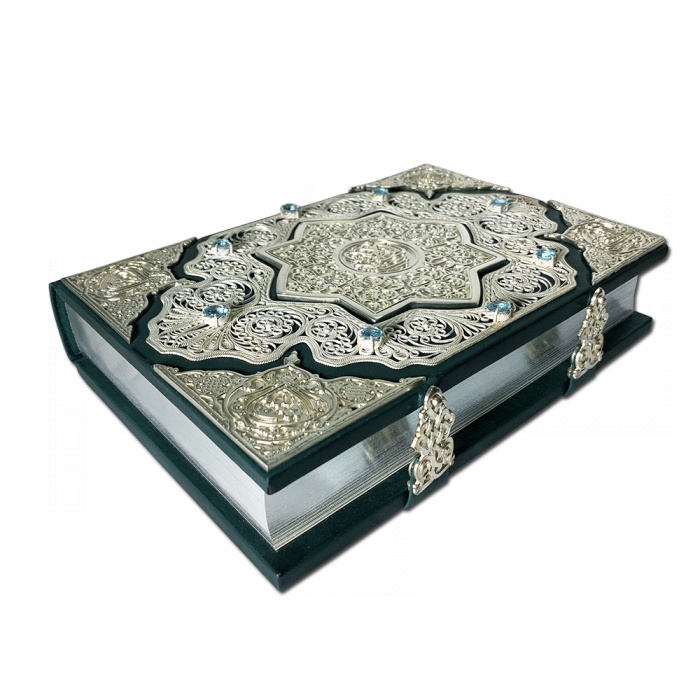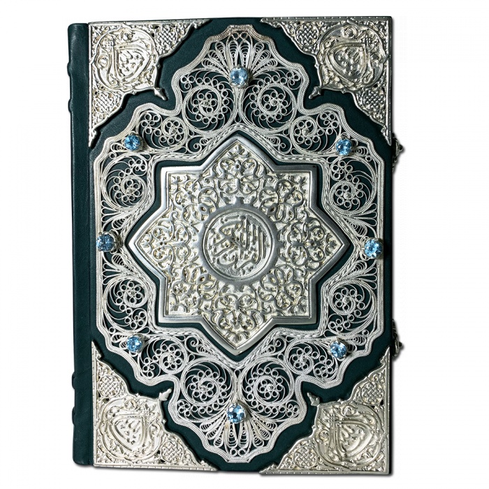 Коран с филигранью (серебро), топазами и литьем в замшевой шкатулке (Подарочная книга в кожаном переплёте)